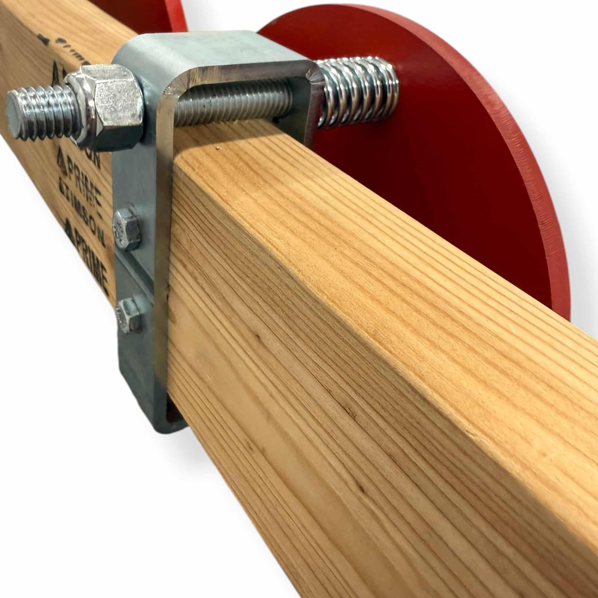 Speed Rack Target hanger is used on a horizontal 2x4 piece of wood, to mount a steel static target to. Includes a carriage bolt with spring to attach the target to and two hex screws to anchor the target to the 2x4.