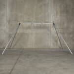 This target gong stand was designed to be easy to use, lightweight, and portable. The stand is easily taken down using the supplied locking pins. The targets are suspended from the stand using laser cut 1/4” AR400 gong mounts. The mounts are free to spin around the stand which prevents chain from being tangled when using heavy loads. This stand is constructed using the four included 60″ lengths of EMT electrical conduit for the legs, and one 60″ length of Rigid Conduit for the crossmember. See our Rigid Conduit Double Gong Stand Kit for the option of hanging multiple targets at a time.